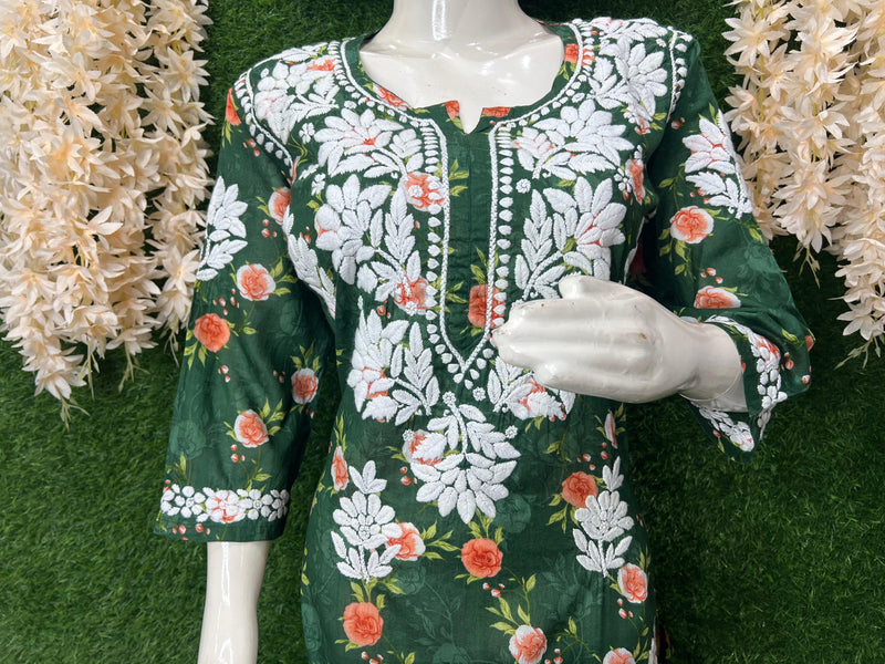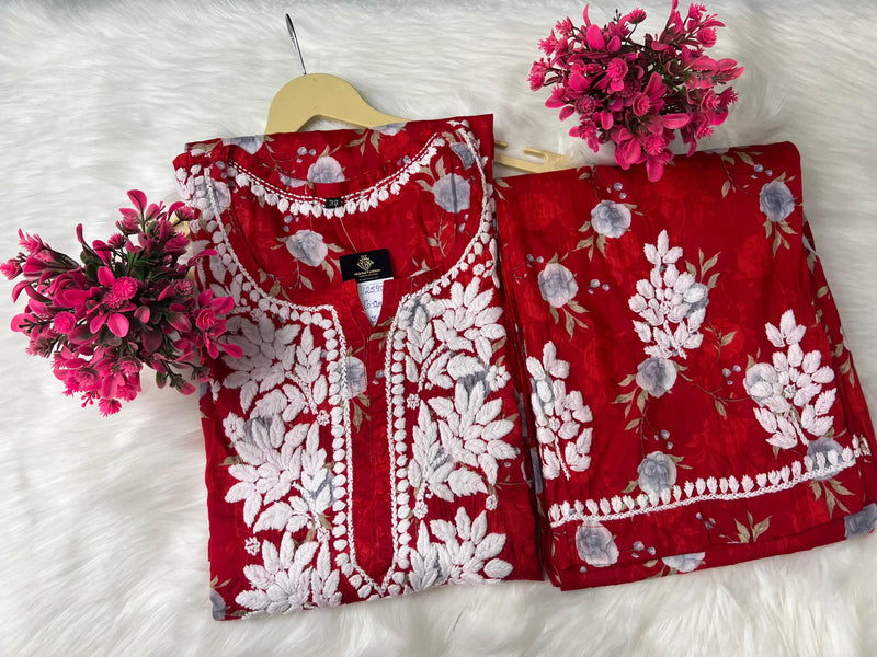 Step into timeless elegance with this beautifully handcrafted Lucknowi Chikankari Mul Print Suit Set. Adorned with delicate hand-embroidered floral motifs and intricate detailing, this outfit blends traditional charm with modern grace. Perfect for festive occasions.