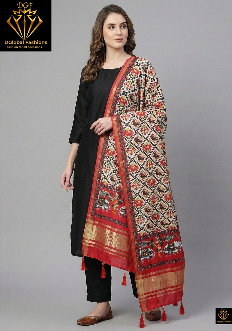 Gaji silk dupatta with intricate Lagdi patta tissue border, floral motifs, striped borders, and tassel detailing—perfect for festive and traditional wear.
