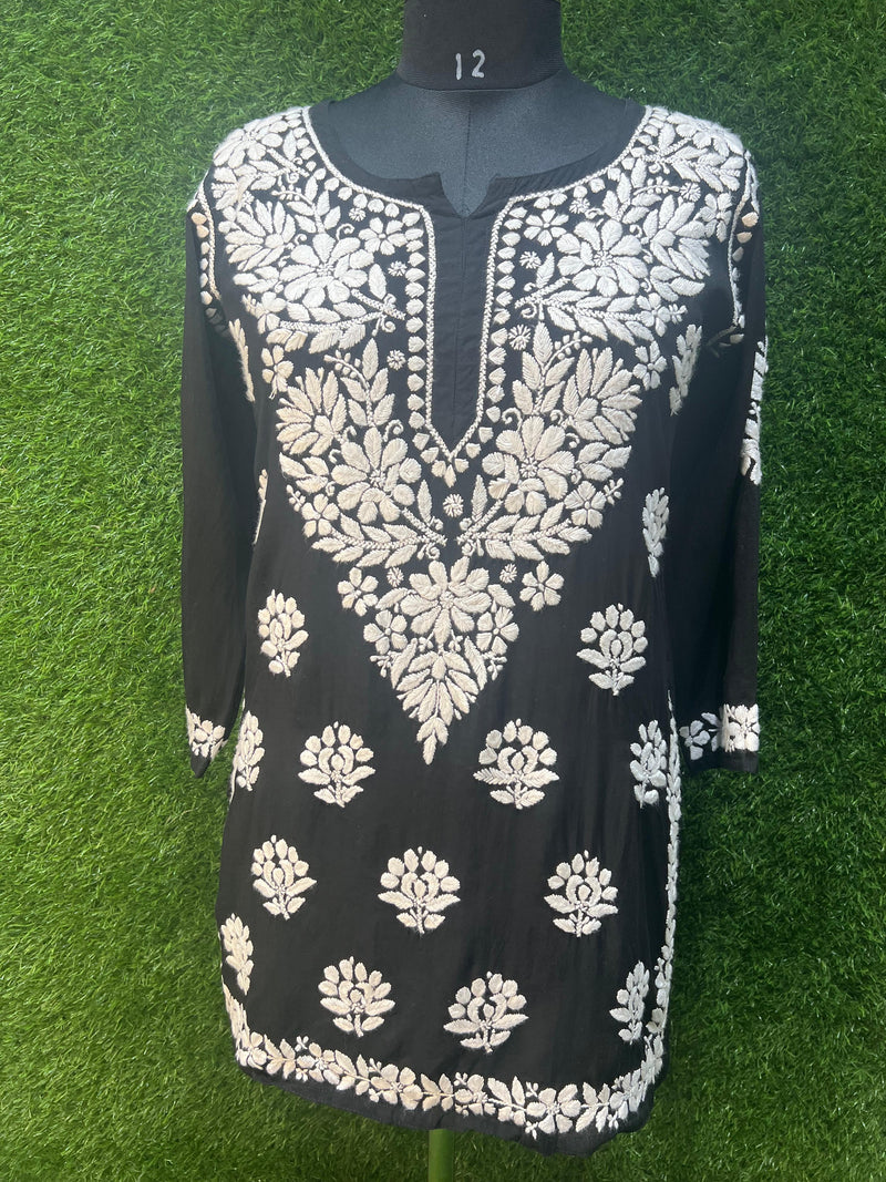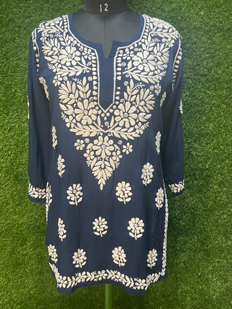 This beautiful Chikankari short top is crafted from lightweight, breathable modal fabric, offering both comfort and style